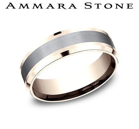TANTALUM AND 14KT ROSE GOLD 7MM SATIN FINISH CENTER WITH HIGH POLISH SLIGHTLY BEVELED EDGE BAND CF467010GTA14KR *PRICE WILL VARY BASED ON FINGER SIZE AND MARKET CONDITIONS-PLEASE INQUIRE FOR CURRENT PRICE*