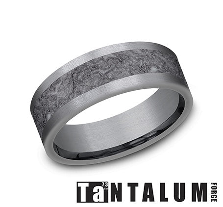 GRAY TANTALUM 7MM SPLATTER DESIGN CENTER STRAIGHT EDGE BAND