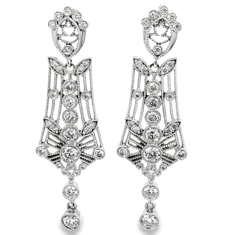 LAB GROWN ROUND DIAMONDS 1.64ctw ANTIQUE DANGLE EARRINGS