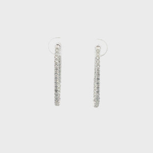 LAB GROWN ROUND CUT DIAMONDS (60) 1.06ctw, F-G/VS, 14KT WHITE GOLD PRONG SET INSIDE OUTSIDE ELONGATED HOOP EARRINGS130306CLG-CJ5437