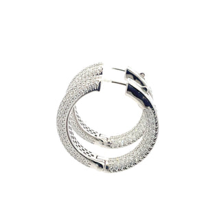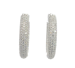LAB GROWN ROUND CUT DIAMONDS (580) 4.11ctw, F-G/VS, 14KT WHITE GOLD DOMED PAVE SET MULTI ROW INSIDE-OUTSIDE HOOP EARRINGS