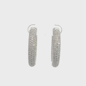 LAB GROWN ROUND DIAMONDS 4.11ctw DOMED PAVE SET HOOP EARRINGS