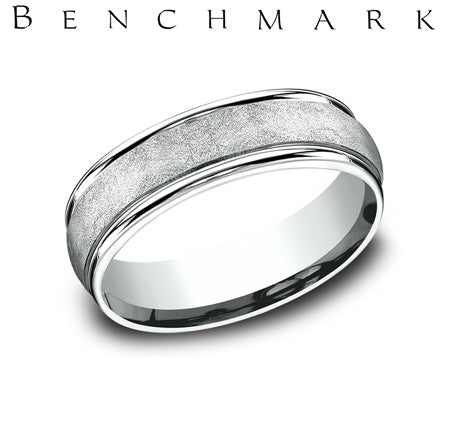 PLATINUM 6.5MM WIRE BRUSH FINISH CENTER HIGH POLISH ROUNDED EDGES BAND RECF86585 *PRICE WILL VARY BASED ON FINGER SIZE AND MARKET CONDITIONS-PLEASE INQUIRE FOR CURRENT PRICE*