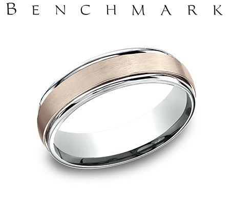 14KT ROSE AND WHITE GOLD 6MMBRUSHED CENTER HIGH POLISH ROUNDED EDGES BAND