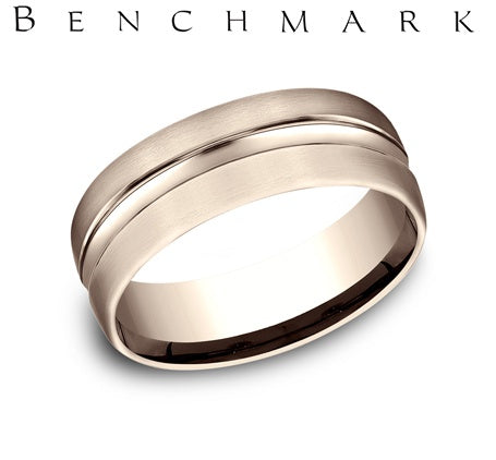 14KT ROSE GOLD 7.5MM HIGH POLISH GROOVED CENTER WITH BRUSHED SIDES BAND CF717505 *PRICE WILL VARY BASED ON FINGER SIZE AND MARKET CONDITIONS-PLEASE INQUIRE FOR CURRENT PRICE*