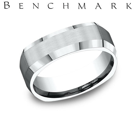 14KT WHITE GOLD SQUARE BRUSH CENTER HIGH POLISH EDGE BAND CF87600 *PRICE WILL VARY BASED ON FINGER SIZE AND MARKET CONDITIONS-PLEASE INQUIRE FOR CURRENT PRICE*