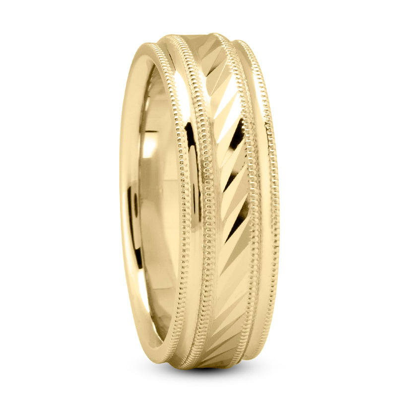 14KT YELLOW GOLD 6MM HIGH POLISH ANGLED GROOVES CENTER WITH DOUBLE MILGRAIN EDE M573-6MM *PRICE WILL VARY BASED ON FINGER SIZE AND MARKET CONDITIONS-PLEASE INQUIRE FOR CURRENT PRICE*
