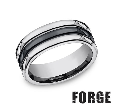 TUNGSTEN AND BLACK CERAMIC 8MM HIGH POLISH COMFORT FIT MEN'S BAND (WBW)